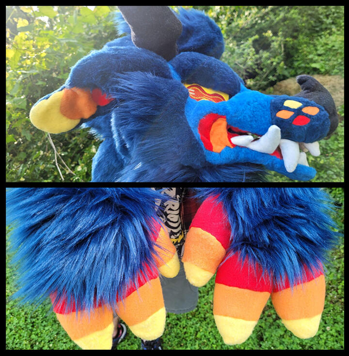 4 FINGER PLUSH HANDPAWSI started making handpaws using the Kloofsuits 4-finger handpaw pattern, but slowly made changes to each piece to fit my style, until I eventually decided to just make my own pattern! You will see elements of Kloofsuits' pattern pieces used and credited for my older paws, but my newer paws have since shifted to my original pattern!My style for making paws is large, with angular shapes and big claws! Materials for claws and pads is fleece by default, but can be upgraded to minky or vinyl!$200 base price+ $30 for claws